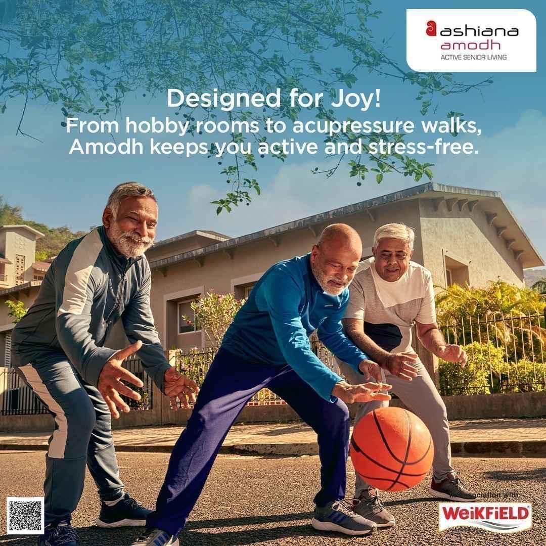 Retirement is an exciting new chapter in life, and to make it even more exciting, we at Ashiana have come up with our 7th Senior Living project in Talegaon, Pune. Well connected to Mumbai & Pune through the Mumbai Pune expressway, Ashiana Amodh offers a serene escape from the chaotic city life and brings you to a destination that is surrounded by green hills and close to Indryani River. You'll enjoy the clean air and pleasant weather year-round. Its pristine natural beauty and tranquil atmosphere make it the perfect place to call home, especially for retirees who aspire to live an active life amidst nature. Spread across 11.93 acres, Ashiana Amodh offers 1/2/3 BHK premium residences with breathtaking views of the natural scenery. To keep seniors active and healthy, 19,000 square feet club has also been planned in the very heart of the project with all the modern amenities along with dedicated spaces like a yoga lawn, swing plaza, acupressure pathway etc . Designed in an open landscape to keep seniors engaged throughout the day.